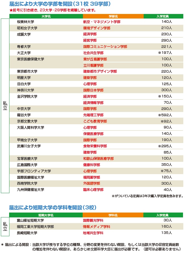 | データ資料: | 令和2年度開設予定の大学の学部等の設置届出について (文部科学省ホームページ)より表にして作成 |