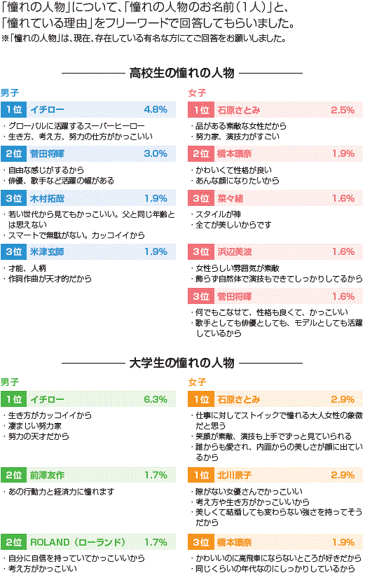 | 回答者数: | 高校生 男子270人/女子515人、大学生 男子174人/女子375人 |