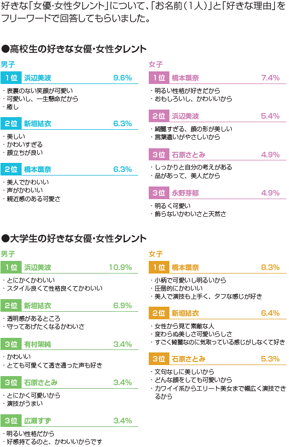 | 回答者数: | 高校生 男子270人/女子515人、大学生 男子174人/女子375人 |