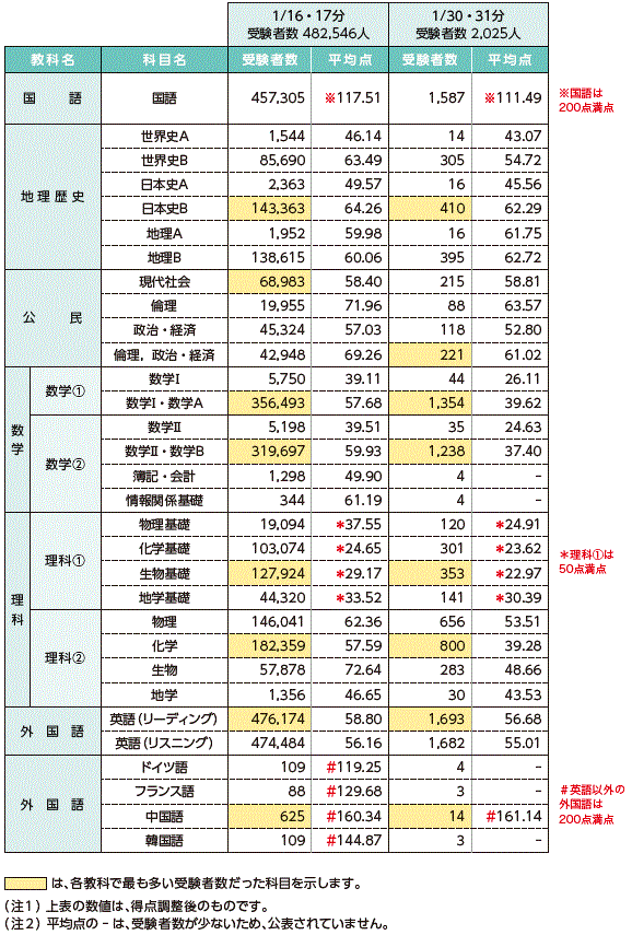 | データ資料 | : | 令和3年度大学入学共通テスト実施結果の概要 (独立行政法人大学入試センターのホームページより作成) |