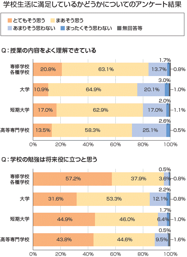 | 調査対象 | : | 大学生13,061人、短期大学生1,025人、 高等専門学校生379人、専修学校・各種学校生3,546人 |