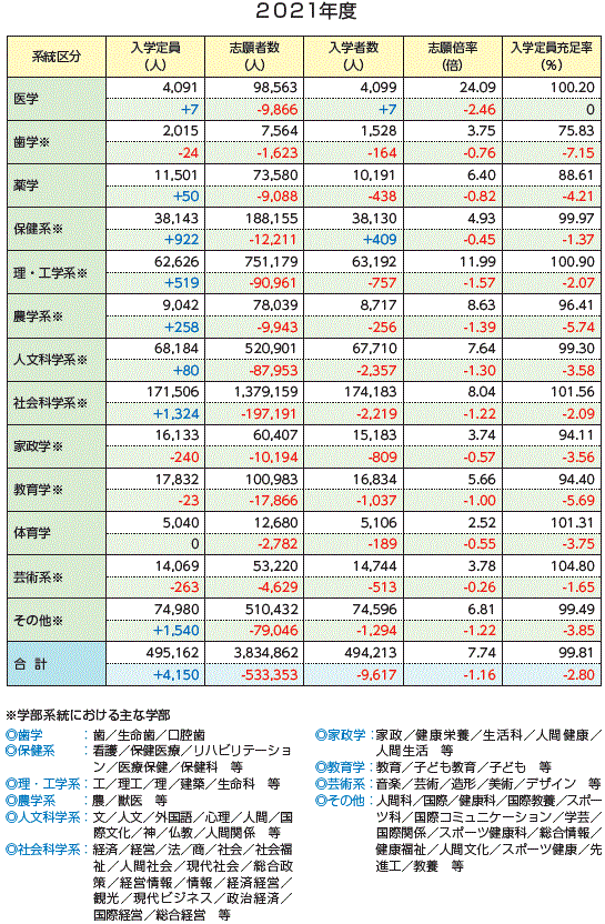 データ資料 「令和3(2021)年度私立大学・短期大学等入学志願動向」