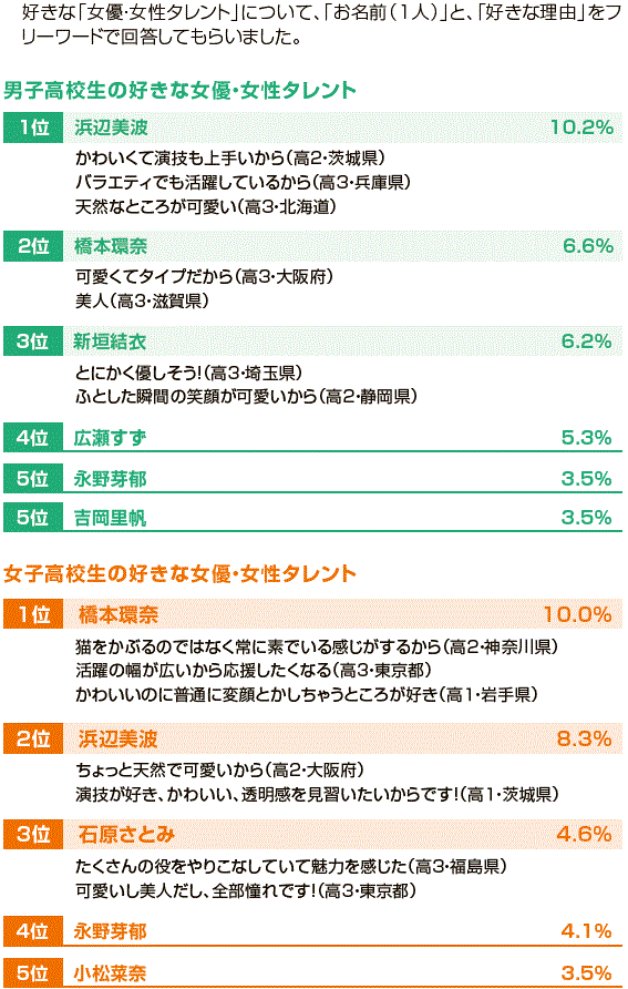 高校生の好きな「女優・女性タレント」