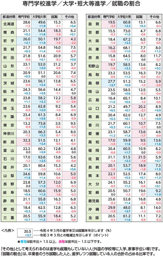 データ資料 令和4年度学校基本調査(文部科学省ホームページより表にして作成)