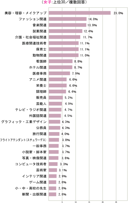 専門学校への進学希望者の就きたい職業(女子)