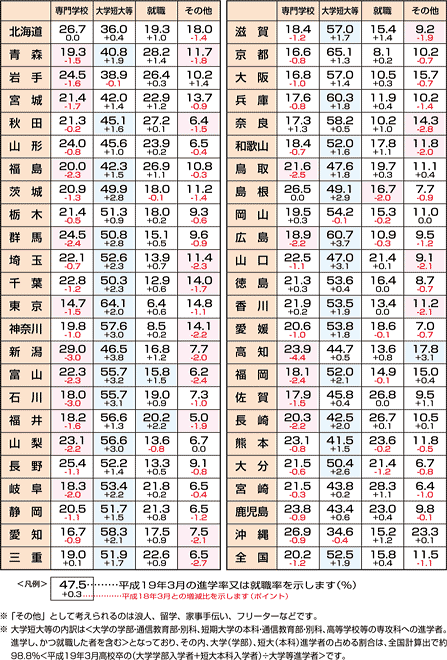 | 調査時期:平成19年5月1日現在 データ資料:平成19年度学校基本調査速報(平成19年8月発行)より <文部科学省生涯学習政策局調査企画課発行> |
