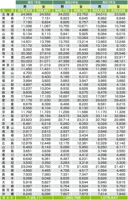 | データ資料:平成19年度学校基本調査報告書 発行:文部科学省 発行時期:平成19年12月21日 |