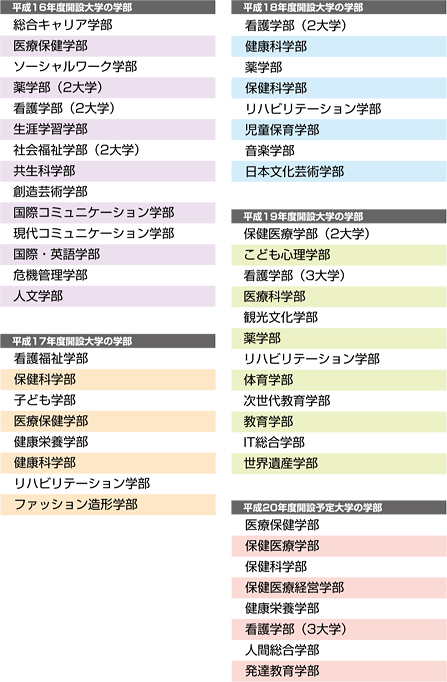 | データ資料:各年の開設予定大学等一覧<文部科学省> ※平成20年度は、平成20年1月現在のものです。 |