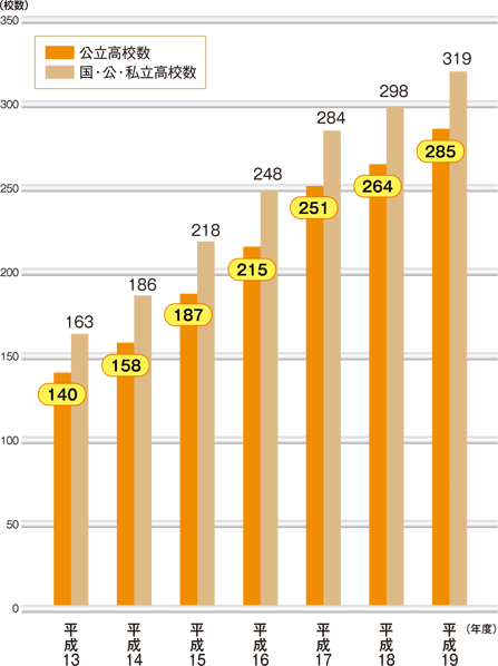 | 平成19年度:公立高校285校 |