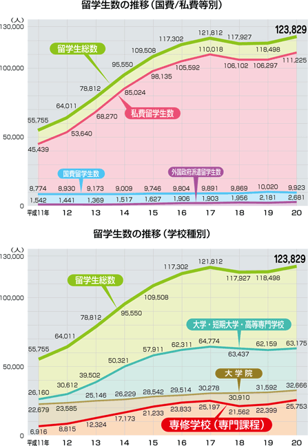 データ資料:「平成20年度外国人留学生在籍状況調査結果」独立行政法人日本学生支援機構