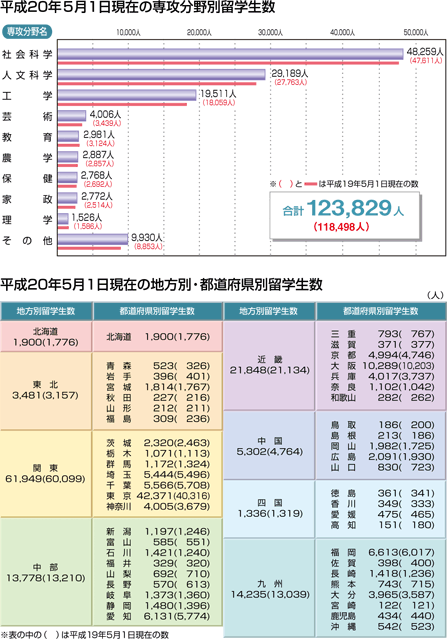データ資料:「平成20年度外国人留学生在籍状況調査結果」独立行政法人日本学生支援機構