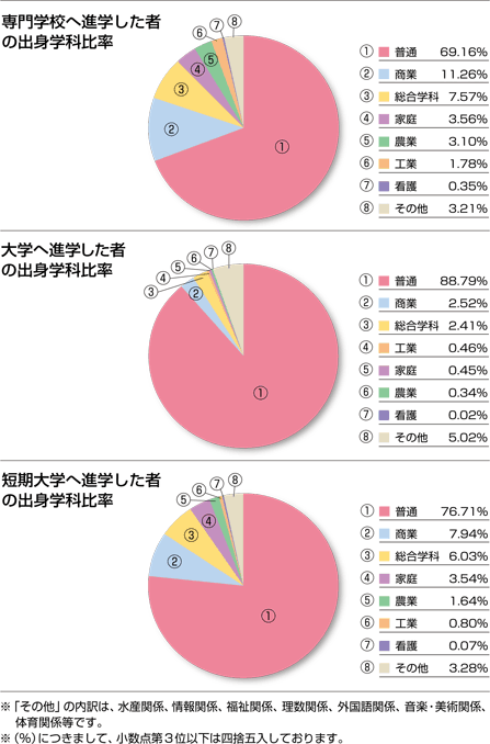 高等教育進学者の高校での出身学科(女子)