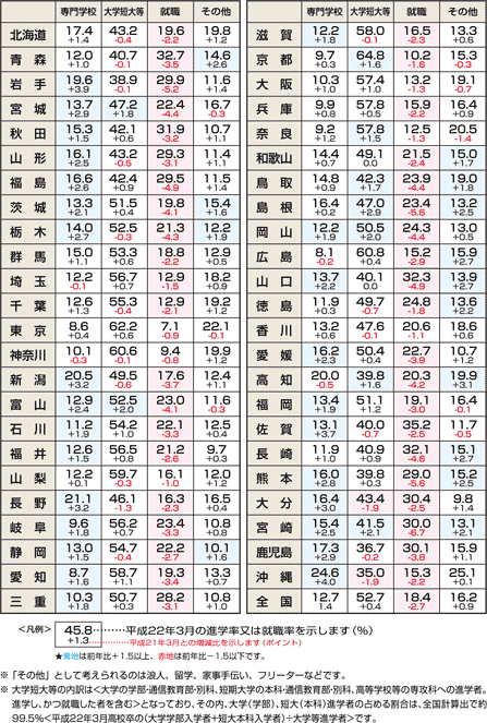 | データ資料: | 平成22年度学校基本調査速報(平成22年8月発行)より <文部科学省生涯学習政策局調査企画課発行> |