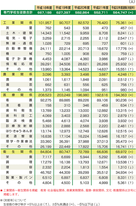| データ資料: | 平成18~21年度学校基本調査報告書(22年度は学校基本調査速報) <文部科学省生涯学習政策局調査企画課発行> |