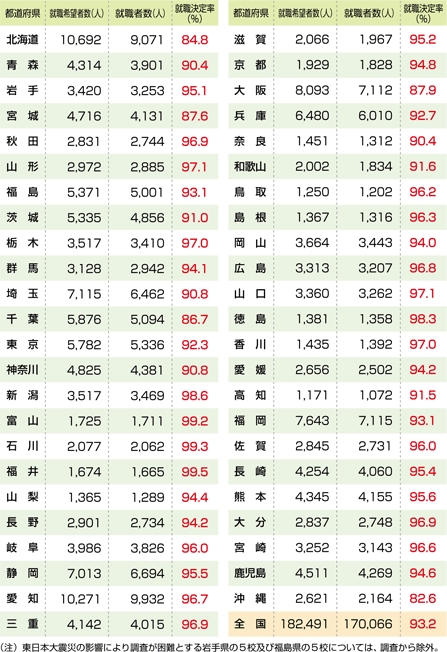 | 平成23年(2011年)3月高等学校卒業者の就職状況 |