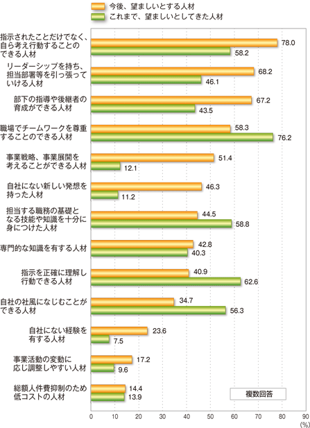 | 企業の人材育成方針として、どのような人材に育成していくことが望ましいかを調査した内容です。 |