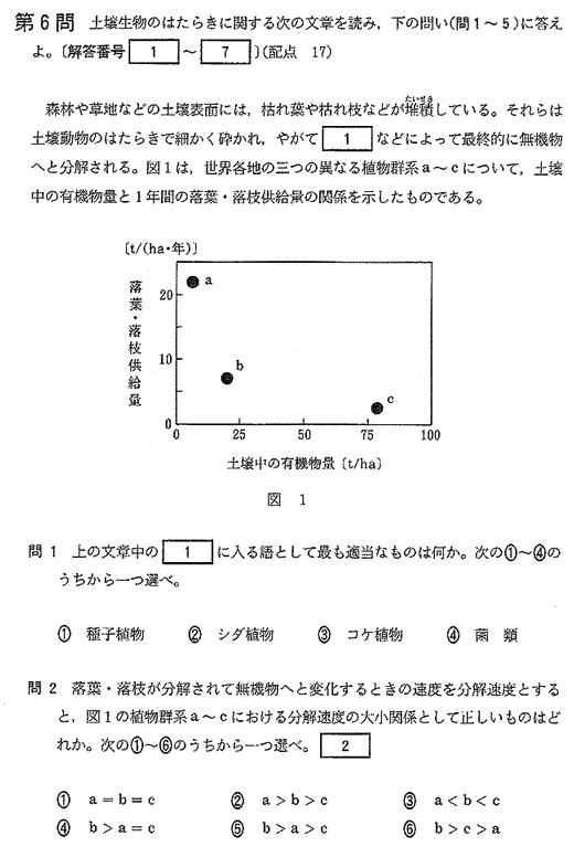 生物IB第6問 | 2001年度大学入試センター試験 - JS日本の学校