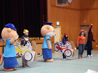 その中で、2013年から生徒有志によって進められてきたのが、自転車の盗難防止啓発活動だ。同校は、高知県警が2012年から始めた自転車盗難防止モデル校に指定されたのを機に、2013年秋、生徒が教師、警察職員の協力のもと、創作劇「迷子の自転車さん」を製作。同年冬から年数回、高知市内の小学校や少年剣道大会会場などで上演し、防犯登録・鍵掛け・自転車に名前を書くなど、子供たちに「盗まれない防犯意識」と「盗まない規範意識」の大切さを、笑いを交えながらわかりやすく伝えてきた。