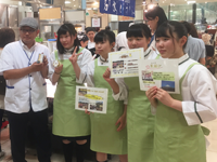 今回、百貨店で販売したのは、「一芽惚れ(ひとめぼれ)名水豆乳プリン」「笑結び(えんむすび)豆乳チーズケーキ」と名付けられた2種のスイーツで、当日は、開発した生徒も応援に駆けつけて販売に協力した。