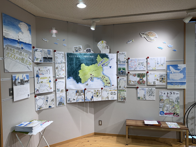 3人は、参加者に撮影ポイントの参考にしてもらおうと、現地に出かけるなどしてまとめたラリーマップを作成。足摺宇和海国立公園内の竜串ビジターセンター「うみのわ」に、自分たちで描いた土佐清水各所の絵と共に展示した。
