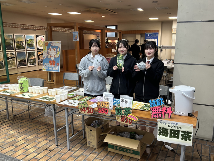 2025年度には、3人の3年生が地元美作市の海田地区で生産される「お茶」の新たな活用法を考案した。