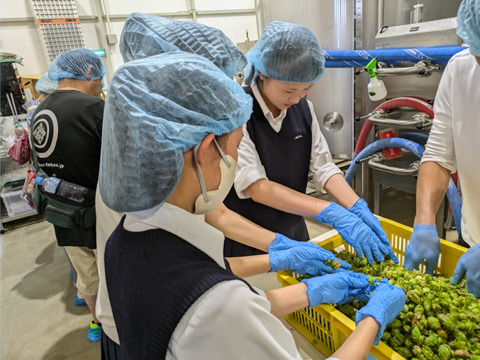 2025年度は、グローバルビジネス科の生徒たちが、「課題研究」の授業の一環として地元企業と連携し、低糖質パンやクラフトビールを開発した。